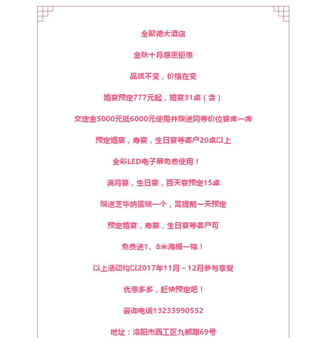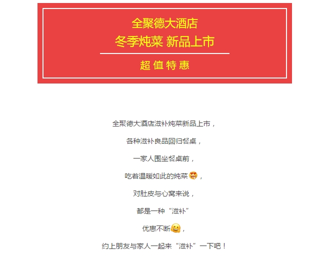 送温暖!宴天下老城店新品炖菜火热上市 让这个冬天不再寒冷 发布时间:2017-10-27来源:点击:2355 洛阳餐旅 宴会专家全国预订客服热线:400-616-3939微信号:hacyly股票代码:836977长按二维码识别后添加关注以上信息来源于洛阳餐旅集团官网:www.socalsmarthome.com 分享到:0 用手机看 拍下二维码,信息随身看 试试用微信扫一扫,在你手机上继续观看此页面。 上一篇:河南省文物专家考察洛阳华夏喜庆文化博物馆(筹) 并对藏品进行鉴定 下一篇:送温暖!全聚德大酒店新品炖菜火热上市 让这个冬天不再寒冷