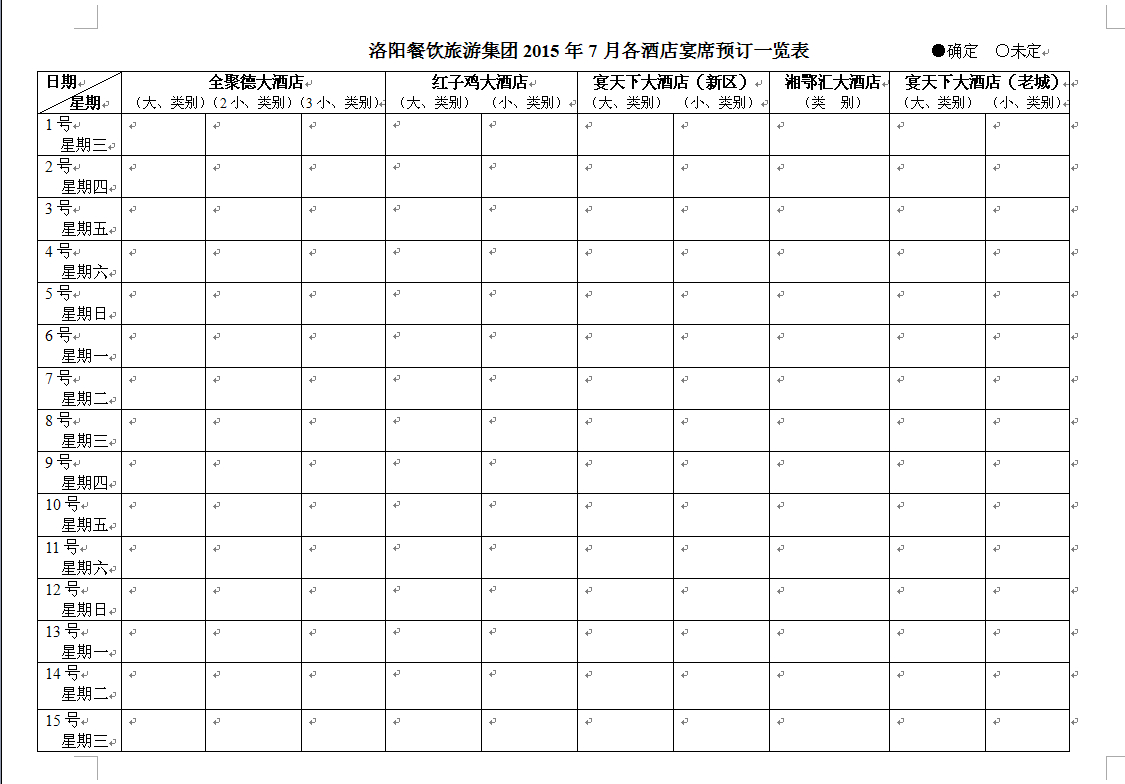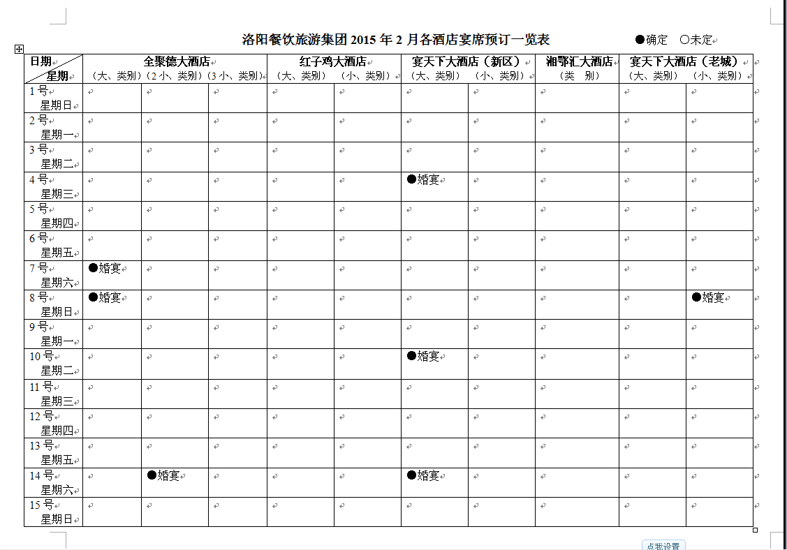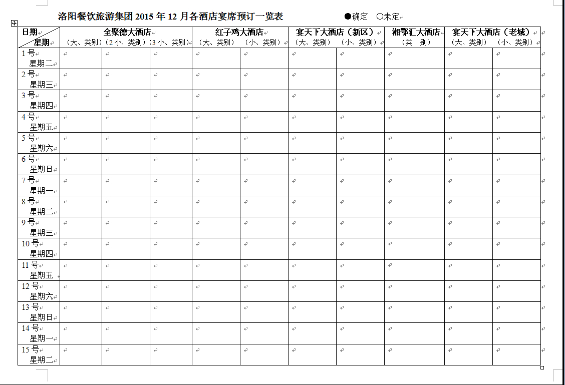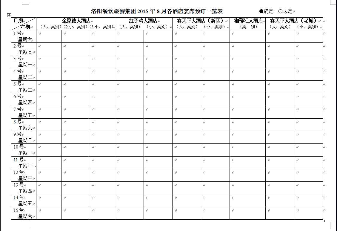 洛阳餐饮旅游集团2015年1月-12月各酒店宴席预定一览表 发布时间:2014-04-28来源:点击:2687 分享到:0 用手机看 拍下二维码,信息随身看 试试用微信扫一扫,在你手机上继续观看此页面。 上一篇:洛阳餐饮旅游集团2015年1月-12月各酒店宴席预定一览表 下一篇:集团公司荣获“洛阳市***受市民喜爱的特色餐饮企业”殊荣