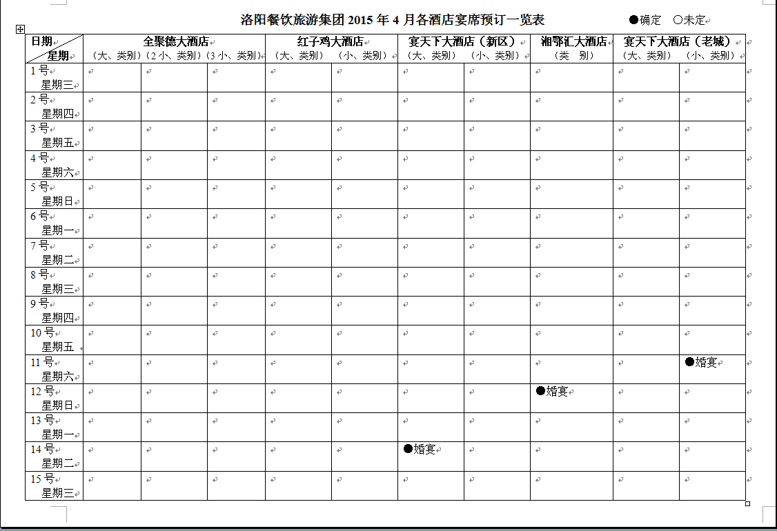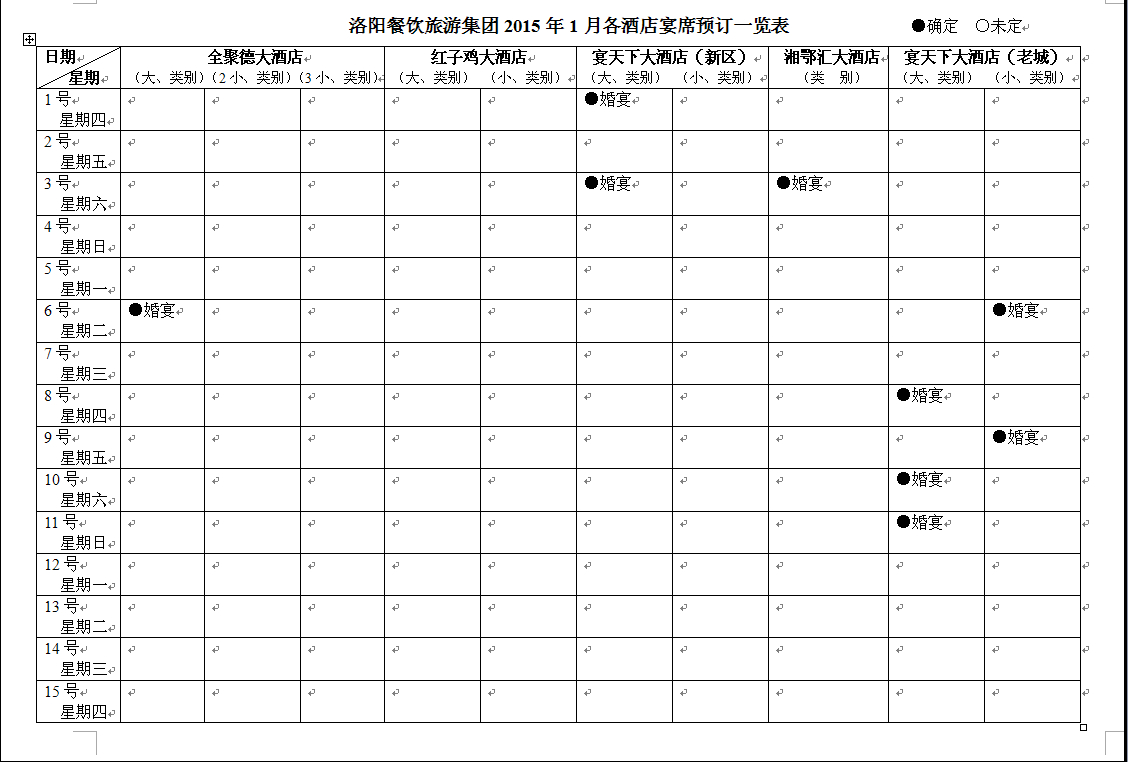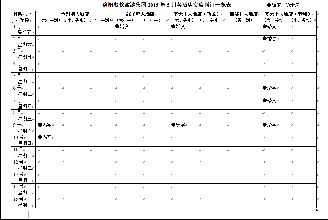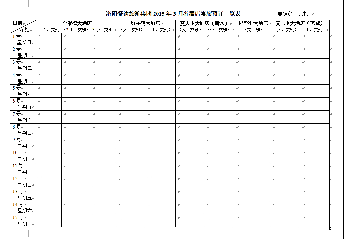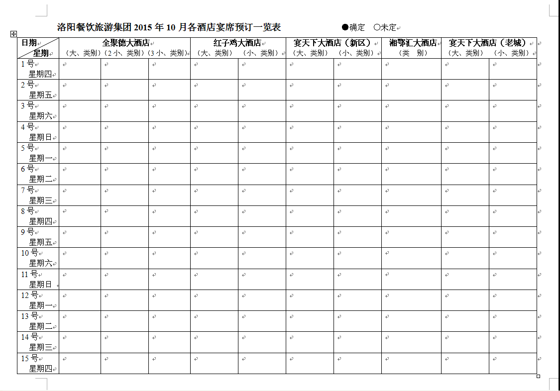 洛阳餐饮旅游集团2015年1月-12月各酒店宴席预定一览表 发布时间:2014-04-28来源:点击:2687 分享到:0 用手机看 拍下二维码,信息随身看 试试用微信扫一扫,在你手机上继续观看此页面。 上一篇:洛阳餐饮旅游集团2015年1月-12月各酒店宴席预定一览表 下一篇:集团公司荣获“洛阳市***受市民喜爱的特色餐饮企业”殊荣