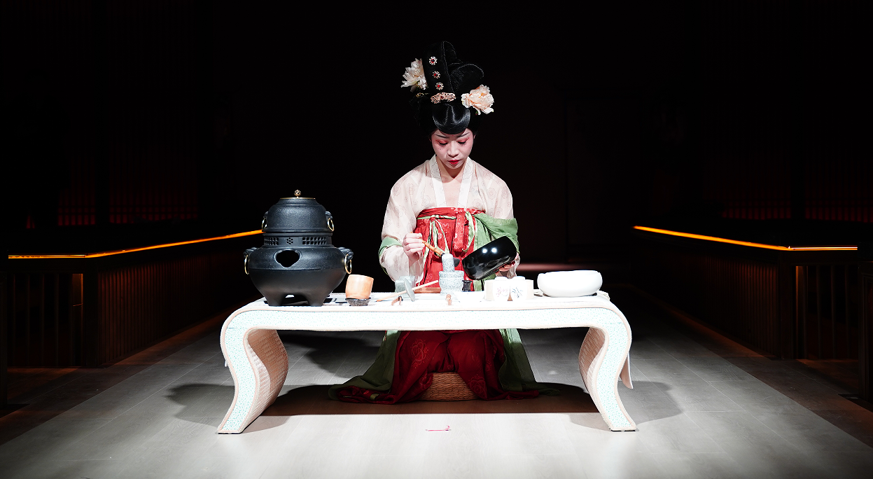 这里延续宫廷御宴礼仪之精华,装扮汉唐服饰的宫女在礼乐声中为食客呈上一道道美食,并由礼官对菜式进行文化讲解,浓厚宫廷礼仪演绎御宴的文化之礼。宾客席地而坐,还原古代帝王宴请百官的宴饮场面,待所有宾客入席,一场以乐侑食的宫廷宴席即将开始。