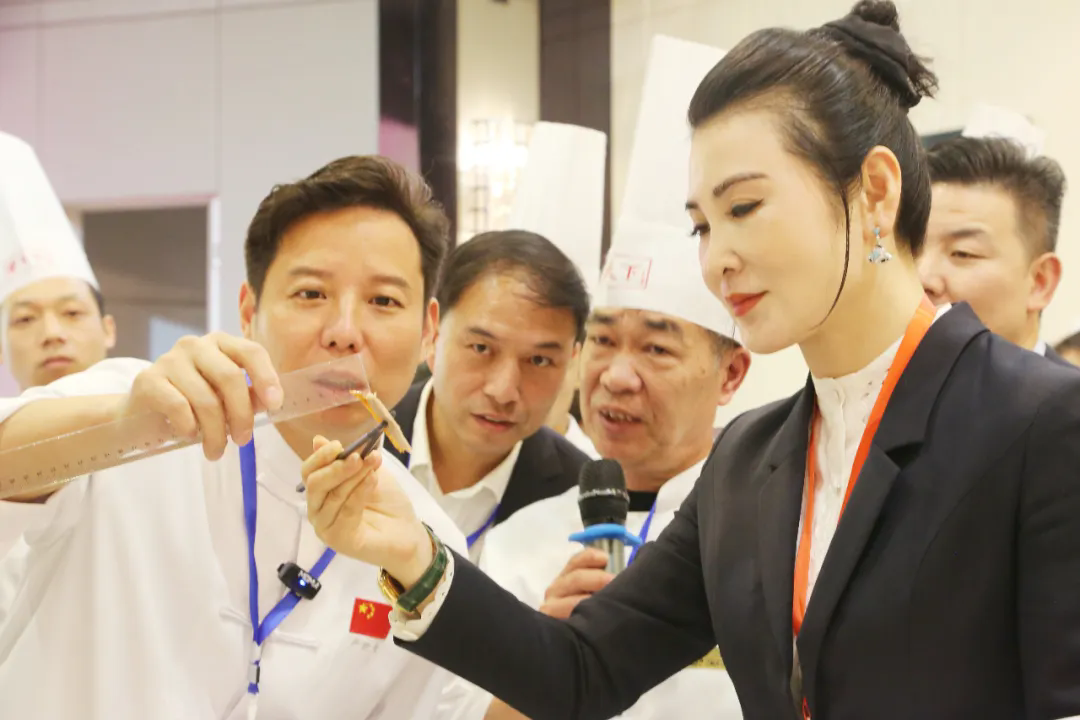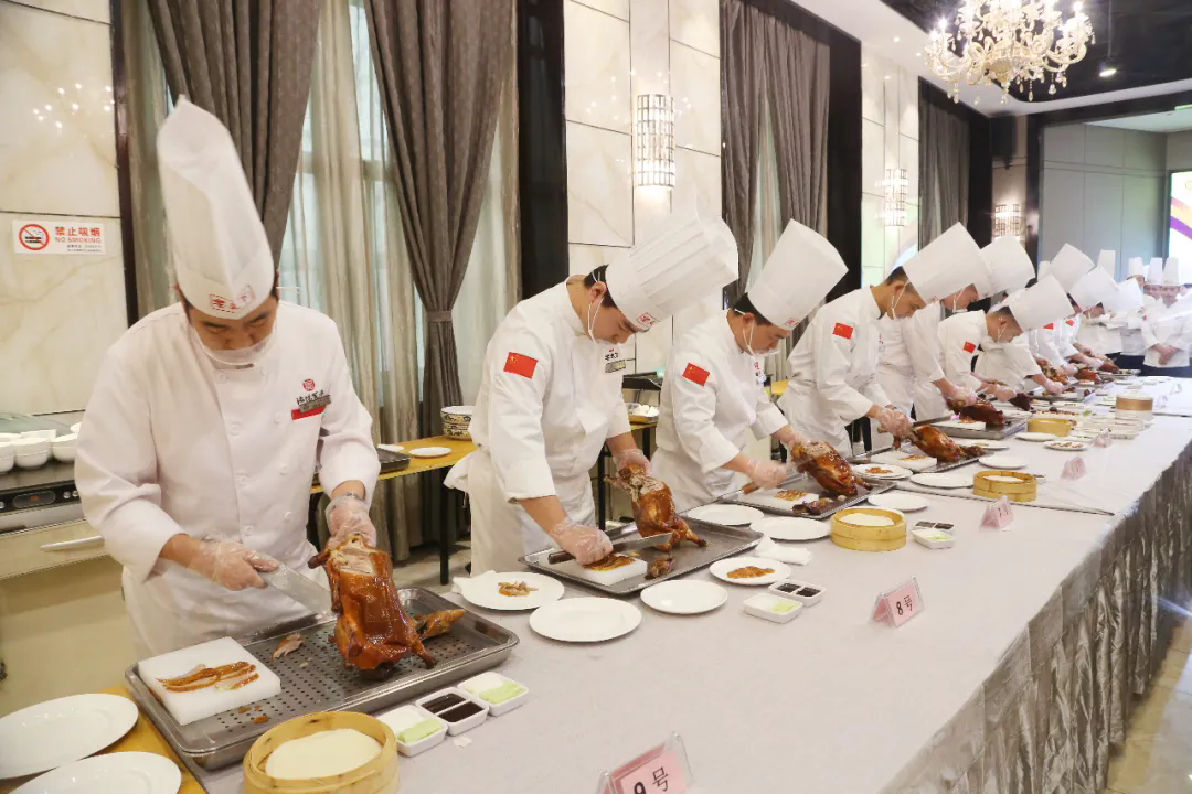 在19日的比赛中,分别进行了T台形象展示、备餐技能展示、餐旅三宝厨艺展示,来自各店的参赛者身着职业装,自信登场,展现职业技能。在“餐旅三宝”(烤鸭、水席、红子鸡)的现场制作,评委依据菜品的外观、色泽、摆盘、口感、刀法技能、操作姿势等方面进行评分。