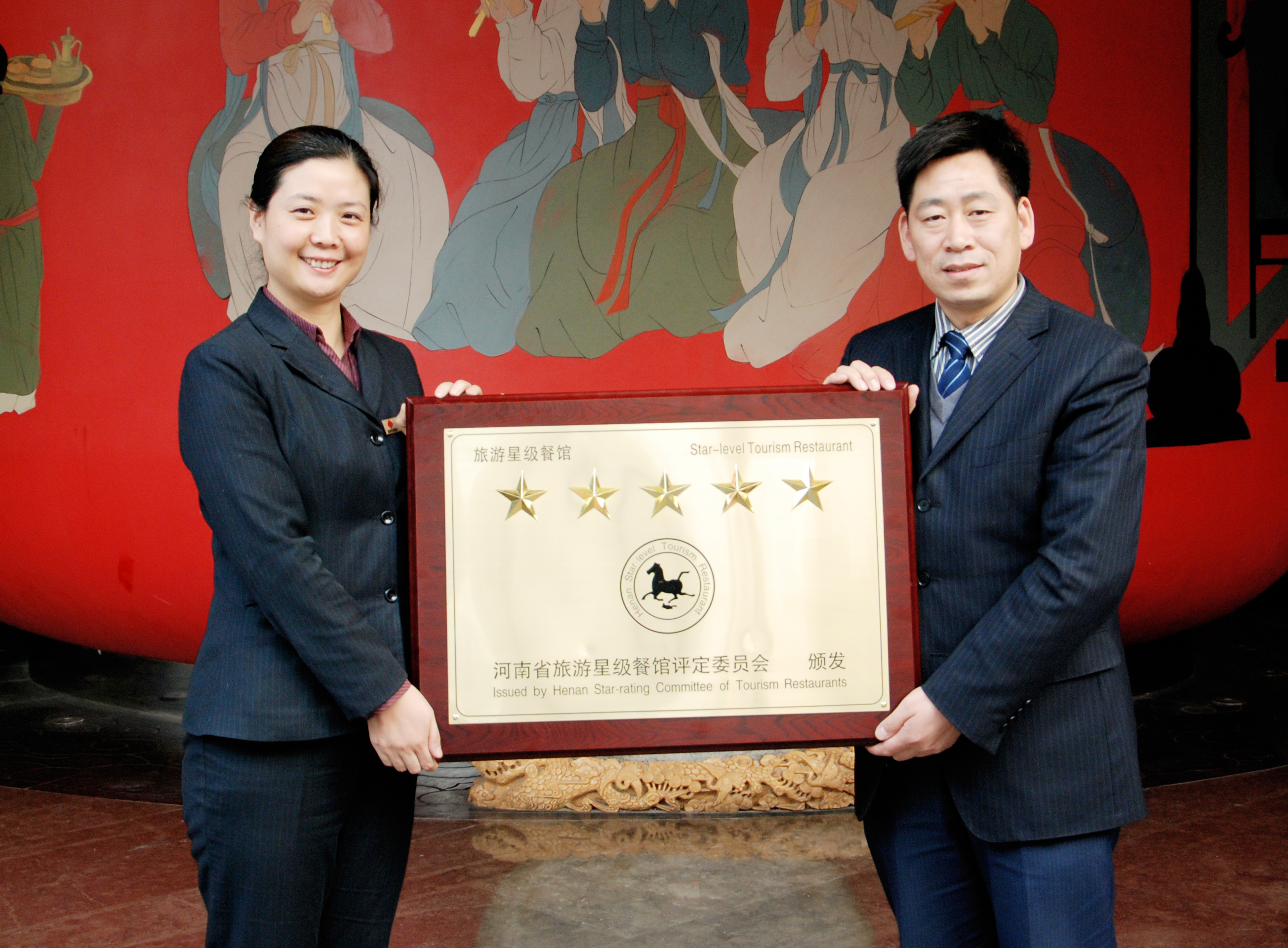 2012年12月18日,从省会郑州传来喜讯:集团公司旗下的全聚德大酒店、宴天下大酒店新区店双双被授予“河南省五***旅游餐馆”荣誉称号,成为河南省7家“五***旅游餐馆”中的两家,同时也填补了洛阳市没有“河南省五***旅游餐馆”的空白。
