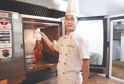 经过全聚德鸭房主管杨红灿的培养,王帅旗很快上手,之前有过相同工作经验的他,学得快掌握得牢。他话不多,却很有思想,他说:“感觉全聚德的技术更先进,刀法更简单,工作起来更方便。而且进货渠道统一标准,不愧是名牌企业。”2012年9月,在集团其他几个酒店获得单品烤鸭特许经营权后,王帅旗就被调往湘鄂汇大酒店担任鸭房主管。